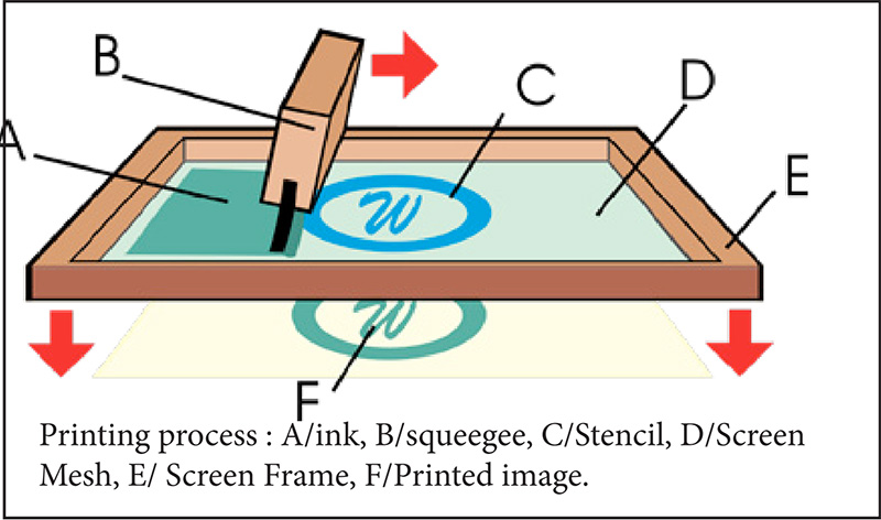 Screen Printing is the process of using a Mesh-based stencil to apply ink onto a substrate, whether it textile, paper, stickers, vinyl, wood, or other material. This printing technique that uses a woven Mesh to support an ink-blocking stencil to receive a desired image. The attached stencil forms open areas of Mesh that transfer ink or other printable materials which can be pressed through the Mesh as a sharp-edged image onto a substrate. A fill blade or squeegee is moved across the screen stencil, forcing or pumping ink through the Mesh openings to wet the substrate during the squeegee stroke.