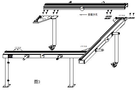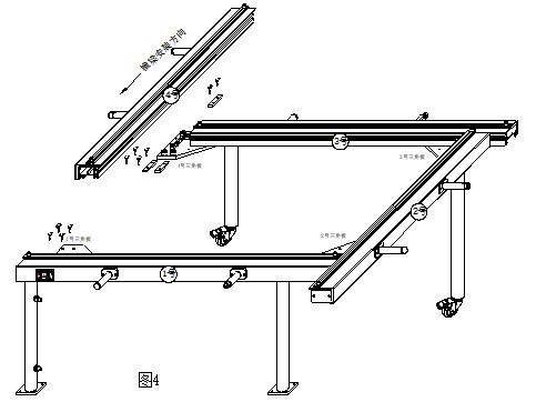 3. The third step, as shown in Figure 3: Install the No. 3 beam, the No. 4 moving foot and the No. 4 triangle plate (the assembly method is the same as the No. 2 beam)